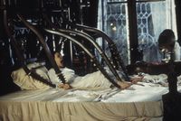 視覚効果を駆使して描いたモダンお化け屋敷映画の決定版『ポルターガイスト』(82)。郊外の分譲地の一角に住むフリーリング家の末娘キャロル=アン(ヘザー・オルーク)が、邪悪な霊によってもう一つの世界に連れ去られる。本作のお化け屋敷はどこにでもありそうな一軒家。ところがそこは墓地の上に建てられており、庭を掘り起こしたのを機に一家は怪奇現象に見舞われる。古びた邸宅ではなく、平凡な住宅をお化け屋敷にするアイデアは秀逸で、本作以降のハリウッド製お化け屋敷映画の定番になった。