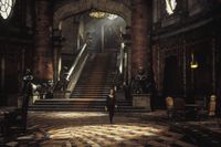 オーバールックホテルは、巨大な丸太小屋を思わせるデザイン。一見普通の大型ホテルだが、どこまでも続く幾何学模様の赤い絨毯、グリーンを強調したバスルーム、真っ赤なトイレなど独特の色設計や、廊下やエレベーター、庭園から調度品まで徹底したシンメトリーの配置が不安をかき立てる。そんなホテルに巣食っているのが、かつてこの地を聖地にしていたネイティブ・アメリカンの霊。怪奇現象そのものは描かれないが、霊に触れ常軌を逸していくジャックや、過去や未来を視る力“ひらめき(シャイニング)”を持つジャックの息子、ダニー(ダニー・ロイド)が目にする凄惨なビジョンは圧巻だ。2019年には成長したダニーがホテルを訪れる続編『ドクター・スリープ』が公開された。