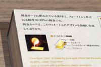 その名のとおり、なんと純金でできているというゴージャスな「ムビチケGOLD」。お値段がなんと3万円(税別、送料込)だというから、その超リッチさに期待せずにはいられない。純度 99.99%の純金を1g使用して制作されているとのことだが、いったいどんな輝きが見れるのか…。早速入手した「ムビチケ GOLD」をデスクに置き、ドキドキしながら見つめる編集部員たちは、まず洗練されたデザインのパッケージに魅入ったあと、粗相がないように裏面の注意書きを読んでいく。