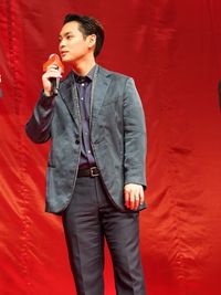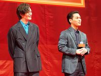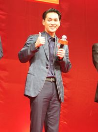 会場の盛り上がりを撮影する柳楽優弥
