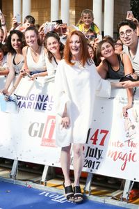 今回も、イタリアで行われたジッフォーニ映画祭に、ミニマルなメイクとアイボリーのひざ上のパンピース姿で登場したジュリアンの写真がインディペンデント紙に掲載されているが、美しさは健在と評判だ。しかし、それゆえにネットユーザーたちからは、ミニスカートから覗く脚に注目が集まってしまった様子。