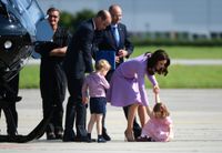ポーランド到着時や出発時、ドイツの到着時には、どこか不機嫌でパパとママにべったりの非社交的な態度が目立ったジョージ王子に対して、シャーロット王女は、出迎えた要人と握手をしたり、手を振ったりと物怖じもせず、ポーランドからドイツに移動する際には、階段に手をついて1人でさっさと飛行機に乗り込む行動力が「2歳にして、顔だけではなく資質も女王の器」とメディアに書きたてられたほどだった。