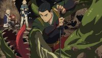 攻守にわたり活躍する魔術師、マルシル(PV第1弾場面カット) [c]九井諒子・KADOKAWA刊/「ダンジョン飯」製作委員会