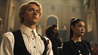 今回解禁された場面写真では、18歳の教育係の少年コリオレーナス・スノー(ブライス)、第12地区の贄の少女ルーシー・グレイ・ベアード(ゼグラー)を中心に、ヘッド・ゲームメーカーのヴォラムニア・ゴール博士(デイヴィス)、ゲーム考案者のキャスカ・ハイボトム (ディンクレイジ)、ゲーム司会者のラッキー・フリッカーマン(シュワルツマン)などの“ゲーム側”のキャラクターから、スノーの従姉タイガレス・スノー(シェイファー)やスノーの同級生セジャナス・プリンツ(アンドレス・リベラ)などの“スノー側”のキャラクターまで、第10回ハンガー・ゲームを取り巻く、個性溢れる登場人物達の姿が明らかに。また、スノーの赤い制服やルーシーの可愛い衣装なども印象的だが、闘技場、プレイヤー、第12地区、テレビ、兵士といった“ハンガー・ゲーム“感あふれるシチュエーションも見受けられ、いままで以上にダークかつエレガントなディストピア感が増した、新たなゲームに期待が高まる場面写真となっている。