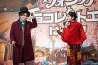 この日の衣装について花村は「リアルウォンカになった気分。衣装さんってすごい!」と大興奮。手にした杖を見つめながら「杖を持ってと言われたけれど、杖をつきながら歩くのか、持ったままの方がいいのか分からなくて…」と戸惑った様子を再現し、「今度(正しい使い方を)教えてくださーい!」とスタッフに呼びかけ笑わせた。チッチは「花村さんが着ているシャツがヴィンテージと聞いたので、私もヴィンテージの靴を合わせてきました」と披露し、取材陣からのリクエストで、真っ赤なトップスがよく見えるようにポーズを決める場面もあった。