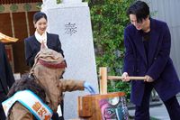 また絵馬に願いを託すことになると、亀梨は「映画『怪物の木こり』沢山の方と結ばれます様に!!」との言葉をつづり、「この映画は、人と人とのつながりも大きなテーマ。僕自身もこれまで結ばれてきたもの、今後結んでいくもの、そういったところを非常に考える今日このごろと言いますか。つながりや、結びつき、結ばれ方というものが、僕の人生において大きな分岐点に来ているなと感じています」と吐露。「今回この映画を通じて、よりたくさんの方たちと結ばれることを願いたいなと思いました」としみじみと話していた。最後には、怪物が返し手となって餅つきを実施。「よいしょー!」との掛け声で杵を振り下ろした亀梨は、「僕は母方のおじいちゃん、おばあちゃんが農家さんだったので、よく餅つきをやったりしていた。ここ最近は集まって餅をついて…ということがなかったので、久しぶりに楽しかったです」と笑顔。人生初の餅つき体験だったという菜々緒は「貴重な体験を、木こりさんと共同作業でできた。いい思い出になりました」と喜んでいた。