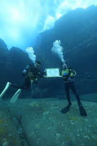 12月3日、「海底遺跡」と呼ばれる与那国島・海底地形にて、ワーナー・ブラザース映画宣伝部『アクアマン/失われた王国』スタッフが調印パネルに一筆サインを行い、12月4日、陸上の与那国島観光協会にて、第21代与那国町長の糸数健一氏が、調印パネルにもう一筆サインし「海底アトランティス姉妹都市提携」を正式締結に。