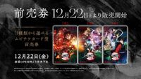 また、本作のムビチケ前売券(カード)が12月22日(金)より発売。ムビチケ前売券(カード)は、今回の上映のために描き下ろしたキービジュアルを使用した全3種類となっており、3種を合わせると1枚の絵としてつながるデザインに。さらに、アニプレックス オンライン(旧ANIPLEX+)にて「バンドルグッズ付きムビチケ」、ローソンにて「バンドルグッズ付きムビチケコンビニ券」が発売される。