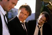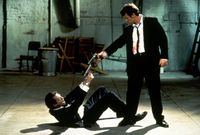 本作を語るうえで、最も多く使われた言葉は“バイオレンス”だろう。しかし暴力描写は、実はそれほど多くはない。本作にそのイメージを植え付けたのは、ミスター・ブロンドが警官を拷問し、片耳を剃刀で切り落とす場面。このシークエンスにしても、ブロンドの残虐行為そのものを画面上では描いていないし、のちのタランティーノ作品のバイオレンス描写を思い起こせば上品なほう(?)だが、それでもインパクトは強烈だった。実際、1992年のカンヌ国際映画祭で上映された際には、この場面で退出した観客が数人いたという。