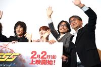新作Vシネクスト『仮面ライダー555(ファイズ) 20th パラダイス・リゲインド』(2月2日公開)の完成披露舞台挨拶でのフォトセッションの様子。