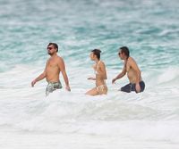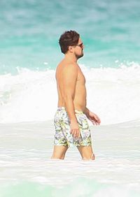 オフの際は、でっぷり太っていることが多いレオ。しかし、ニューヨークで、Tシャツにジャージ、迷彩柄の野球帽にサングラスの姿や、同じくTシャツに野球帽で仲間たちと歩いている様子がナショナル・エンクワイラー紙にパパラッチされているが、今回はいつもよりスリムな様子。それはいいことなのだが、双方に写っている左胸の上の丸い突起物が気になるところ。