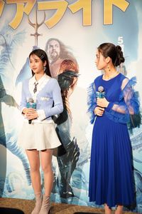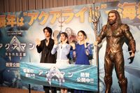 本作の主人公となるのは、すべての海の生物を操る能力を持つ“海底アトランティス”の王、アクアマン(モモア)。ワイルド系かと思いきやユーモアにあふれた一面も持つアクアマンが、南極の氷河に眠る“失われた王国”の邪悪な力による、すべての海、人間界存亡の危機に立ち向かう姿を描く。“海底アトランティス”の王、アクアマンにちなみ、この日の登壇者陣は青を取り入れたファッションで登場した。