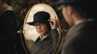 本編で特に印象的なのは、髪を後ろに結い、眼鏡をかけるシーンだ。ワンダーウーマンは、現実世界と隔絶された女性だけの島で生まれ育ち、洋服は見たことも着たこともなかった。劇中では、ロンドンに来て初めて目にする洋服に最初は戸惑いを見せるが、まとめ髪に帽子を被り、素顔が目立たないよう伊達めがねでおしゃれに変身。初めての眼鏡姿に、思わず鏡を見つめる表情が非常に可愛らしい。