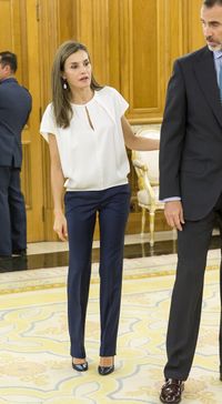 スタイル抜群のレティシア王妃、大人可愛いパンツスタイルで公務へ