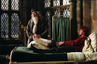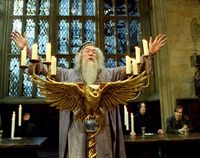 新学期始まりの宴で闇の魔術に対する防衛術の新任教授に就任したリーマス・ルーピン先生(デイヴィッド・シューリス)を紹介するシーンで、ガンボン版ダンブルドアが初登場する。“アズカバンの囚人”ことシリウス・ブラック(ゲイリー・オールドマン)が脱獄したことを受け、魔法省の要請でホグワーツをディメンター(吸魂鬼)が警備することになり、その危険性についても説明。本作が前2作とは異なり、ダークなテイストの作品であることがほのめかされた一方、「暗闇のなかでもあかりは灯すことはできる」と生徒たちを優しく励ます姿が印象的だった。