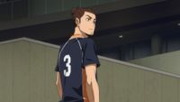 そんな烏野高校のキャプテンを務めるのは、3年生の澤村大地(声:日野聡)。ポジションはウイングスパイカーでありながら、守備専門のリベロ、西谷夕(声:岡本信彦)に次ぐほどのレシーブの実力を誇る。これまで試合をした他チームの選手から「澤村がいなければ烏野の守備はもっと穴だらけ」と評されるほど、チームを攻守の面で大きく支えている大黒柱だ。礼儀正しく正義感溢あふれる性格で、個性豊かなメンバーたちを見事にまとめ上げる。また音駒高校のキャプテン黒尾鉄朗(声:中村悠一)とは、初対面の時から互いに「食えないタイプの奴」という印象を抱き合っている。同じく3年生で、烏野高校のエース、東峰旭(声:細谷佳正)は1年生の月島蛍(声:内山昂輝)に次いでチームで2番目の長身。その大きな体から放つ強烈なサーブでチームの得点力となっている。他校の選手からヤンキーと恐れられたり、留年している等噂されたりするワイルドな見た目に反して性格は非常に優しく控えめ。3年生の澤村や菅原孝支(声:入野自由)からはその弱気ぶりをよく怒られているが、決めるべきところはきちんと決める頼りになる存在だ。