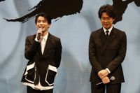 松本は「私も少人数での撮影で、爆発とか殺陣はなかったんですけど、監督は今回、風にこだわっていらっしゃったので、木々が揺れる音とか、そういうこだわりが大きなスケールにつながっているので、早く完成した作品を観たいです。 私も巨大な扇風機に吹かれましたが、本当に聞こえないんですよ」と笑うと、大泉も「本当にセリフが聞こえないから、勘でしゃべるんですよ、『いま言ったな?』と読唇術で」と言って笑いをとる。