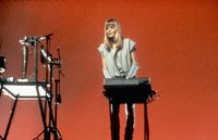 これだけでも演劇っぽいが、さらにおもしろいのは、演者の背後では黒い服を着たスタッフがセットを組み立てていき、最初は殺風景だったステージが、どんどん整っていくこと。バーンによると、ショーの構築過程をショーとして見せるという意図が、そこに込められているとのこと。またハリスンは、演奏中にスタッフが機材を運び込むのは、日本の伝統芸能から発想を得たと語る。黒い服を着たスタッフは、歌舞伎の黒子のような存在なのだ。