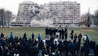 解禁となったシーン写真は9点。バティモン5で働くアビーが、仲間のブラズ(アリストート・ルインドゥラ)と談笑する様子が切り取られているほか、行政の思惑で取り壊される古い団地の様子も。また、新しく臨時市長に就任したピエールが整然とした市庁舎で街並みの新構想を練る姿、行政との戦いに挑むバティモン5の住人らを捉えたカットなど、いずれも緊迫感あふれるものとなっている。