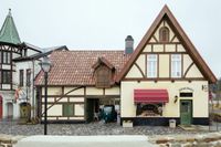 『魔女の宅急便』の主人公、キキと黒猫ジジが暮らしたパン屋「グーチョキパン屋」は、ヨーロッパの伝統的な木造建築技法であるハーフティンバー様式の2階建ての建物となっている。1階のパン屋では実際にパンをテイクアウトできるし、キキやジジが寝泊まりした屋根裏部屋に入ることができる。