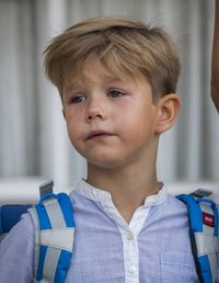 ブルーグレーのワンピースに白黒のリュックを背負っているジョゼフィーヌ王女は終始笑顔で楽しそうだが、カーキ色の半ズボンにブルーグレーの長袖のシャツ、ブルーのリックを背負ったヴィンセント王子はなにやら不安そう。フォトコールには笑顔で応じたようだが、メアリー王太子妃と離れたくないのか、泣いている様子も見て取れる。