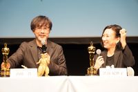 渋谷は「獲った瞬間は、びっくりしちゃって。直前にテキーラが配られていたので、それもあってめちゃめちゃテンションが上がってしまいました」とにっこり。「シュワルツェネッガーさんから(オスカー像を)もらった」という高橋は、「目を見ただけでもいい人なのがわかりました」と目尻を下げた。「シュワルツェネッガーさんからもらいました」と続いた野島も、「手足が痺れた。感じたことのない痺れ。シュワルツェネッガーさんを見てわけがわからなくなったんですが、そのあとに山崎さんの英語のスピーチで」と笑いながら語ると、山崎監督が「なんで笑うんだよ!」とツッコミ。野島は「それを温かく見守ってくださっている、会場の皆さんの顔が忘れられない。本当にいい場所だなと感じました」と印象を話すと、山崎監督も「その空気がビシバシ伝わってきた。すばらしい場所」と同調していた。