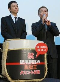 板尾創路が監督作『脱獄王』で自信! “脱獄”を祝って鏡割り