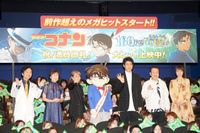 高山は「ありがたいですね」と喜びをかみ締め、「公開記念舞台挨拶をした時に、無事に始まったと思う。今回も登場した時に皆さんのお顔を見て、満足していただけているという気がしてうれしかったです」と笑顔を見せた。「すごいですね、本当に。驚きます」と目を丸くした大泉は、「初日だけで63万人。普段、実写の映画に出ている役者としては、興行期間の1か月、2か月の目標がそのへんですよね。それをコナンくんは1日で!」と感心しきり。