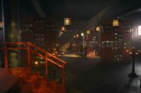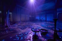 「最初に監督と相談し、陰陽寮の内部は博士たちの部屋や客間以外は土足の床にすることを決めました」と振り返る林田。「教室は太い柱で高い天井があり、色味はモノトーンで統一。柱は鉛のような重い色味にしています。高い柱の間には模様の入った透明度の高い紗幕を吊り、透けた部分から見えたり見えなかったりする効果をねらっています」。