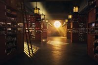佐藤監督から林田に出された要望の一つが、日本だけでなく当時すでにヨーロッパに存在していた要素を取り入れるということであった。教室の幕の柄や壁の文様にケルト模様を採用。さらにベンガラ色の書棚がアクセントとして機能する書庫には幾何学的な模様のステンドグラスが。そして漏刻部屋に「プラハの天文時計のようなものがあってもいいのでは」という提案から、巨大な渾天檥とその脇に奈良時代からある水時計を配置。和洋の様々な要素が融合し、唯一無二の平安京の世界が表現されていった。