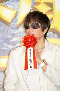 経済産業大臣・織田信長役のGACKTは「オファーがあった時に、まず話を聞かないで断った」とさらりと語り、周囲の笑いを誘った。「『信長って、織田信長ですか?』と話を聞かせていただくところから始まって。『武内監督が一番求めていることはなんですか?』という話をしたら、今までの映画、ドラマの他の織田信長よりも、一番カッコいい信長をやってほしいと言われて。『それなら、もしかしたらできるかもしれないですね』と。撮影に入ると、武内監督が褒めてくれるんですが、その褒め方が下手すぎて。『ムダにカッコいい』と褒めてくれる。全然うれしくないです。『ムダ』っていります?」と続けて、さらに会場を沸かせた。武内監督は「カッコよくもあり、ミステリアスな信長を演じてほしいとお願いした。異様に怖かった」とGACKT演じる信長のオーラは震えるほどだったと話し、「GACKTだけが現場で浮いていた」とぶっちゃけた。
