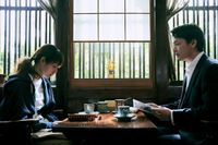 このたび入手した場面写真は2枚。沙織里が掲示板に貼られた娘の捜索を呼びかけるチラシを直す姿では、ややおぼつかない手元とぼんやりした横顔から、娘を捜し続ける日々のなかですり減っていく彼女の心の内が浮かび上がっている。またもう一枚は、中村演じる地元テレビ局の記者・砂田と向かい合いながら焦燥感と苛立ちを禁じえずにうつむいている様子が切り取られている。
