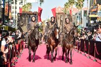 会場には恐ろしい表情で口を開いた巨大な猿のモニュメント、独裁者プロキシマス・シーザーが鎮座する玉座が設置され、さらにレッドカーペットには人間ではなく馬に乗った猿たち…。まさに“猿の惑星”と化したハリウッドの街は、大勢のファンやマスメディアで異様な熱気に包まれる。そこに登場したキャスト&スタッフ陣は、熱烈な声援に応えながら、写真撮影やサインにも応じるなどサービス精神旺盛。
