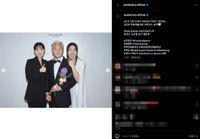 BIBIという名前で歌手としても活躍中のキム・ヒョンソもレッドカーペットに登場。イタリアのファッションブランドBlumarineによるブラウンのキャミソールマキシドレスには、スパンコールの蝶がいくつも羽ばたいている。ゴージャスだが可憐な輝きが、パンキッシュな個性と可愛げを持ち合わせた彼女にぴったりだ。今回、『このろくでもない世界で』(7月26日公開)で映画部門新人女優賞を獲得。感激のあまり、スピーチで「映画やドラマのような芸術を作った人類に感謝します!」と迷言を残し、主演のソン・ジュンギも大爆笑だった。
