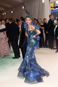 圧巻のルックを披露したのは、今年の共同ホストを務めたゼンデイヤ。なんと一晩に3ルックで登場した。レッド(今年はガーデンがモチーフの白と緑色)カーペットで2度のお色直し。ガラのイベントが始まったあとも着替えたのだが、そのいずれも絶賛の嵐!最初のルックは、ジョン・ガリアーノによるメゾン・マルジェラ。1999年のディオールのドレスをベースにカスタムされたものだそう。ドレスコードのインスピレーションになったバラードの小説は、ディストピアを描いているため、ゴシックにまとめたカラーパレットやヘアメイクも、ドレスコードの芯をついている。