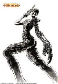 解禁されたのは、バズカットで左手が義手、右手には銃を構えるフュリオサの凛々しい姿を描いたイラスト。原特有の劇画タッチでありながら繊細で、フュリオサの気高さがいまにも動き出しそうなほど躍動感たっぷりに描かれ、長年敬愛してきた「マッドマックス」とのコラボレーションに原本人の熱量が伝わってくる渾身の一枚となっている。さらに、一足先に本作を鑑賞した原からのコメントが到着。本作を大絶賛するとともに、ミラー監督をクリエイターの心の師として尊敬の念を語り、その愛ゆえに“弟子入りを志願“するほど、熱い胸の中を爆発させた。