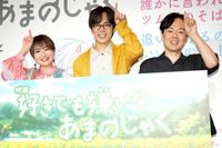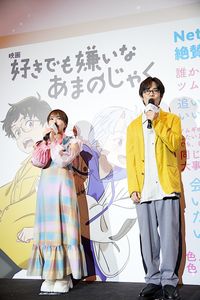 スタジオコロリド最新作『好きでも嫌いなあまのじゃく』の公開記念舞台挨拶が5月25日に新宿バルト9で開催され、小野賢章(柊役)、富田美憂(ツムギ役)、柴山智隆監督が登壇。サプライズで主題歌&挿入歌を担当した「ずっと真夜中でいいのに。」からメッセージが到着し、3人が喜びをあふれさせた。