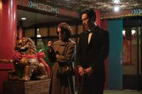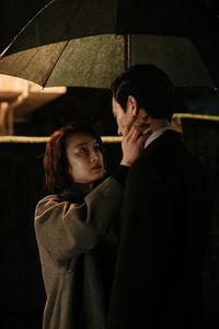 また、門脇の出演シーンの新たな場面写真もあわせて解禁。煌びやかなアクセサリーや装飾品を身につけ、いかにも裕福そうだがどこか寂しさを感じさせる空虚な表情でタバコを燻らすシーン、タクシーでどこかへ向かうシーン、そして初恋相手のタイライと共にタイライの働くレストランの前で横並びに並んでいるもの。最後は同じ傘に入り、タイライの顔に両手を這わせ見つめ合う2人。ヤンジュンメイの目元には傷が見られる。ただの客と店員のそれではない妖艶な空気が感じられるシーンだ。