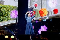映画『猫の恩返し』(02)の主題歌「風になる」を歌い颯爽とステージに登場したキム・ジウォン。日本語での歌のプレゼントにオープニングから大きな歓声が上がった。手を振ったり水を飲んだり、日本語を話したりと一挙手一投足に客席からは「可愛い!」などと大きな反応があがり、熱狂的な人気ぶりがうかがえた。