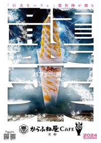 約150種類のオリジナルパフェを考案するなど、長年多くの人にパフェの魅力を伝え続けている大阪のからふね屋の名物、全長31cmのジャンボソフトパフェ。何重にもトルネードするソフトクリームは、巨大竜巻モンスターの激しい渦を連想させる。からふね屋CAFE大阪店(JR大阪駅)、ビエラ高槻店(JR高槻駅)にてポスター掲示、ステッカー配布が予定されている。