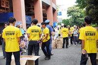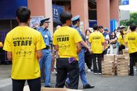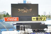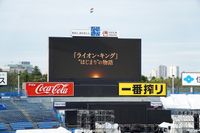 「孤児ムファサは、なぜ偉大な王になれたのか?」という言葉がつづられたうちわが配布された 取材協力:神宮外苑花火大会実行委員会、日刊スポーツ新聞社