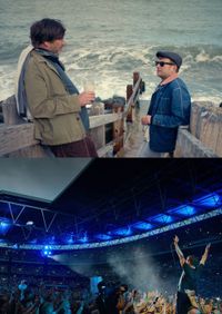 今回解禁された場面写真には、『blur:To The End/ブラー:トゥー・ジ・エンド』から、レコーディング中に海辺で談笑する、ヴォーカルのデーモン・アルバーンとベースのアレックス・ジェームスの2人と、『blur:Live At Wembley Stadium/ブラー:ライヴ・アット・ウェンブリー・スタジアム』から、ライヴ中に客を鼓舞するアルバーンの姿と、バンドの両面を感じることのできるシーンが写されている。