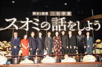 三谷幸喜が脚本と監督を務める最新映画『スオミの話をしよう』の初日舞台挨拶が9月13日にTOHOシネマズ六本木ヒルズで開催され、長澤まさみ、西島秀俊、松坂桃李、瀬戸康史、遠藤憲一、小林隆、坂東彌十郎、戸塚純貴、宮澤エマ、三谷監督が登壇した。