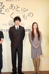 坂口健太郎とイ・セヨンがダブル主演を務めるドラマ「愛のあとにくるもの」の来日記者発表イベントが9月24日に東京都内で開催され、坂口とセヨン、ムン・ヒョンソン監督が登壇した。
