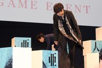 映画の内容にちなみ、頭脳バトルを実施することとなったこの日。自らの顔のパズルを、バラバラにした状態から完成させるゲームに挑み、会場はどちらが勝つかを予想することに。佐藤は「こういうの強い。目にも止まらぬ速さで完成させたいと思います」と自信満々で、一方の綾野は「俺、弱いよ」と弱気発言。「がんばります」とポツリと語り、会場の笑いを誘った。