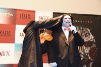 生死を賭けた戦慄のゲームや予想がつかないストーリー展開で、世界中のファンを恐怖に陥れた映画『ソウ』(04)。そのシリーズ最新作『ソウX』が10月18日(金)より全国公開されることを記念した試写会イベントが、10月11日に都内にて開催。芸人のトム・ブラウンが衝撃コスプレで登壇し、会場を沸かせた。