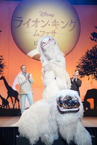 またステージに駆けつけた右近は、「ムファサとキロスは光と影のような関係性。ムファサはキロスの存在を通じて大きく、王になっていく。とても重要で、壮大な存在がキロス」と切り出しつつ、渡辺がキロス役に決定したことで「ますます自分としても身が引き締まるし、胸を借りられる部分もあるし、とてもうれしくワクワクする高揚感がある」と感激しきり。さらに当日が渡辺の誕生日とあって、サプライズプレゼントとして「獅子舞 嘉例(カリー)」による「獅子舞」の演舞と特製ケーキを贈る場面も。「獅子舞 嘉例(カリー)」の獅子はライオンを意味するとも言われており、獅子の口の中にそれぞれ書かれた「嘉」「例」の文字を見ることが出来ると毎日が一粒万倍日になり、幸せをもたらすのだという。演舞を堪能した渡辺は「すごいですね。迫力がある」と驚き、「対決するシーンを思い出すくらい、迫力がありました」と劇中のシーンと重ねながら特別なプレゼントへの感謝を伝えていた。