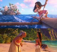 この赤いスカートについてキャラクター・アート・ディレクターのダニエル・アリアガは「彼女のコミュニティでリーダーシップを意味する色である赤色の服を着ています。また、前作の衣装と見比べると、刺繍やモチーフなども違っています」と、衣装デザインを変化させることでモアナのキャラクター性を表現したと明かす。