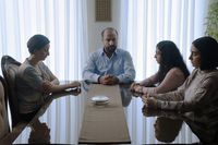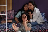 解禁された場面写真は9点。暗く沈む表情の姉レズワンを心配そうに見守る母ナジメと妹サナを捉えたカットのほか、家族にもかかわらず、父イマンから不審な目線を投げかけられる姉妹、本作で重要なキーワードとなる“銃”をイマンから手渡されるナジメ、目隠しをされたまま取り調べを受ける女性の姿など、いずれも劇中に走り続ける“不安と緊張”を印象的に写しだしたシーンになっている。