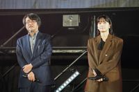 ホラー作品の制作時には怖い経験をするという話を耳にするとのMCのコメントに城定監督は「撮影中はないけれど、今月末に樹海で撮影を予定していてロケハンに行きました」と告白。ロケハンでは独特の空気を感じたそうで「なにも起きないといいなと思っています」とニコニコ。霊感がないという深川が「撮影中に若葉くんが幽霊を見たと言っていて。起きたらおじさんが座っていたって」と共演の若葉竜也のエピソードを披露すると、清水監督が「(田口)トモロヲさんが忍び込んだのでは?」と深川と若葉演じる夫婦が移住する麻宮村の村民たちが過剰に信奉する自治会長役の田口トモロヲの名前を挙げ、笑いを誘っていた。